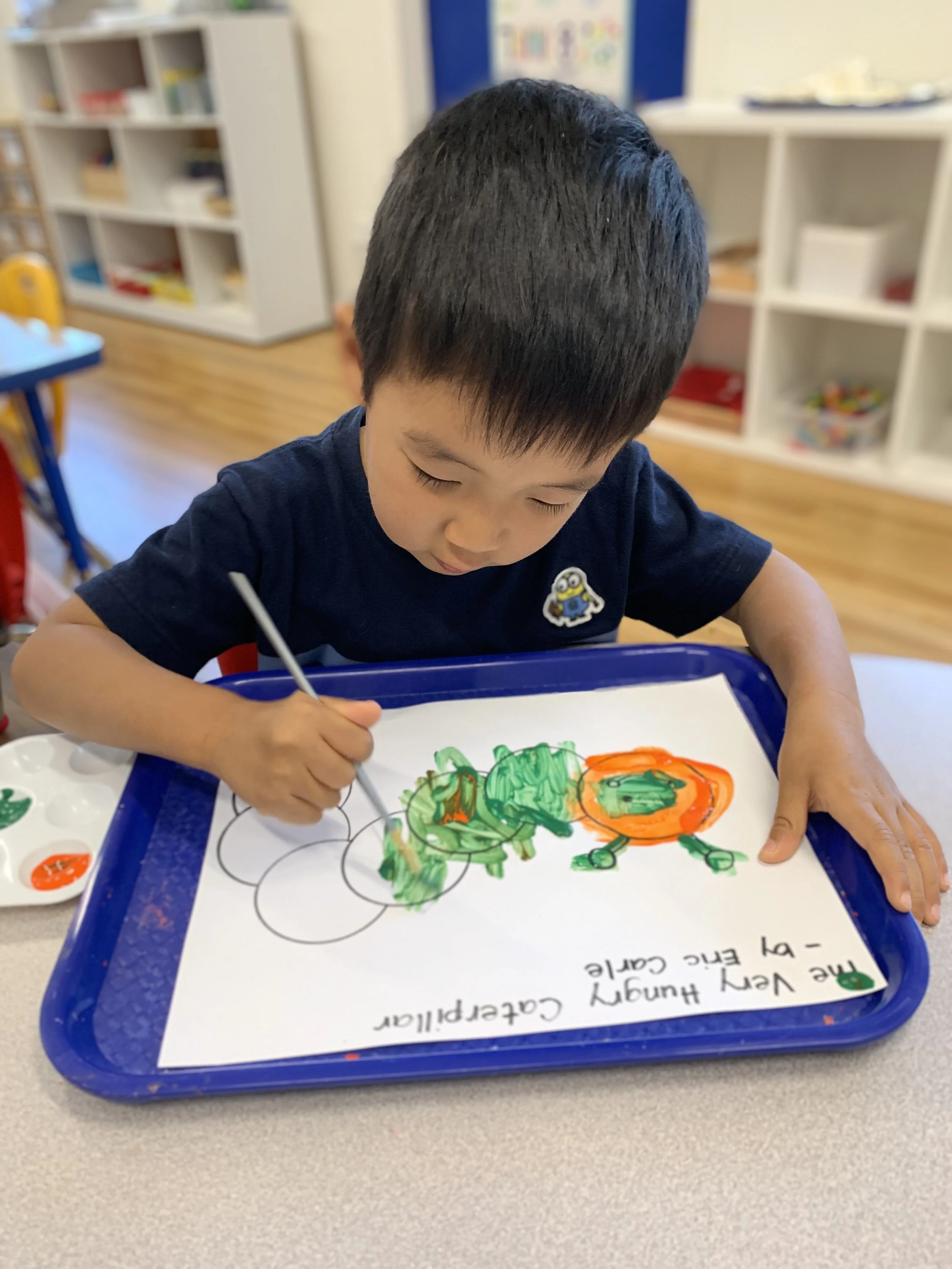 Ideally, about 1,000 books need to be read to a child before he/she enters kindergarten. The exposure to books helps the child acquire concepts about books, so the child is ready for experiences in reading and writing. In addition to reading many picture books together, we also pick one or two favorite children’s books as our theme for the week and design extended activities to enrich children’s development in all 8 intelligences.